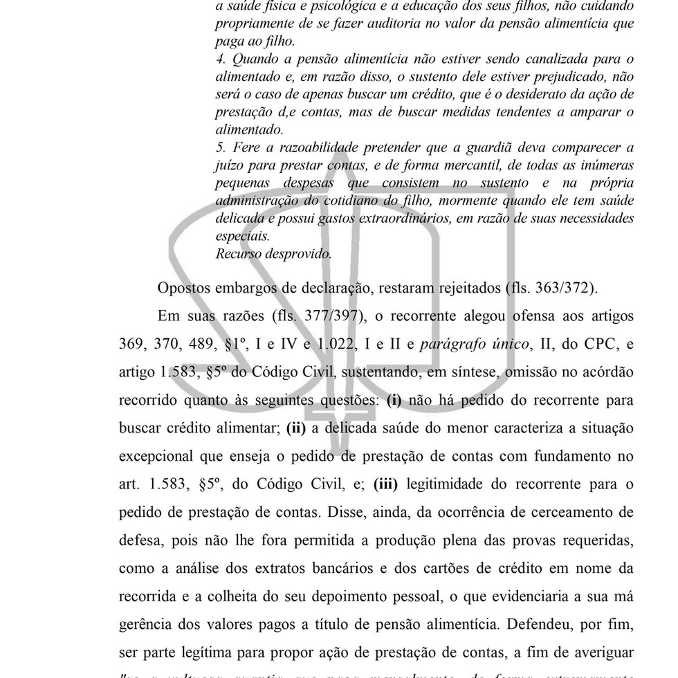 Acordão: paradigma do STJ sobre fiscalização da pensão alimentícia